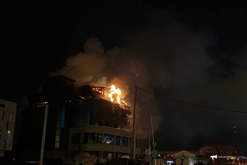 Почти сутки пожарные ликвидируют возгорание офисного здания в Южно-СахалинскеВ тушении участвуют 20 человек и 6 единиц техники ГУ МЧС России по Сахалинской области (ФОТО)