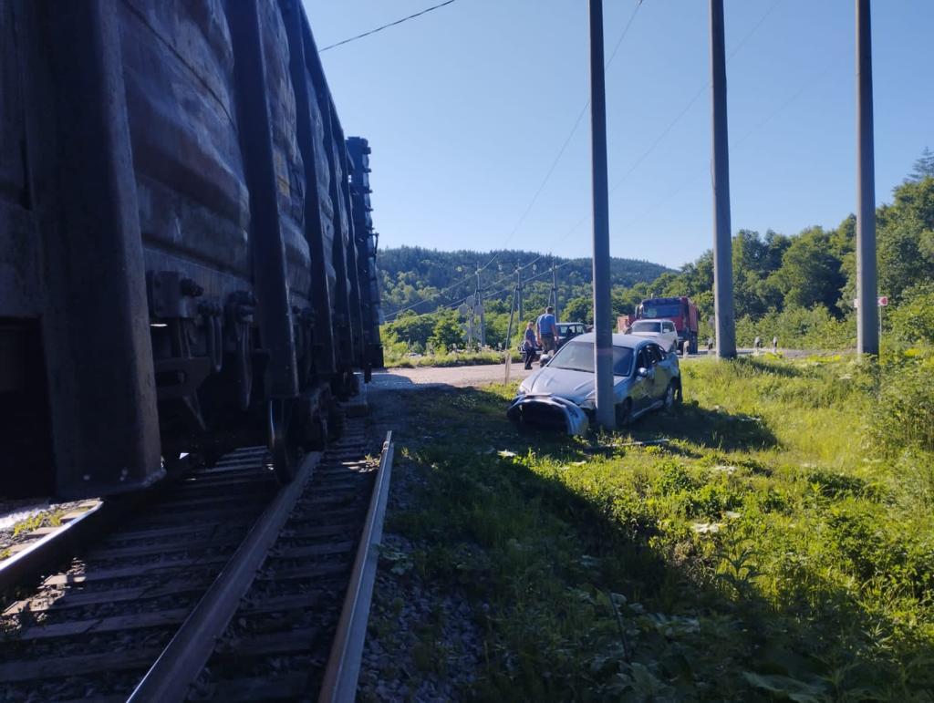 Иномарка попала под грузовой поезд на юге Сахалина