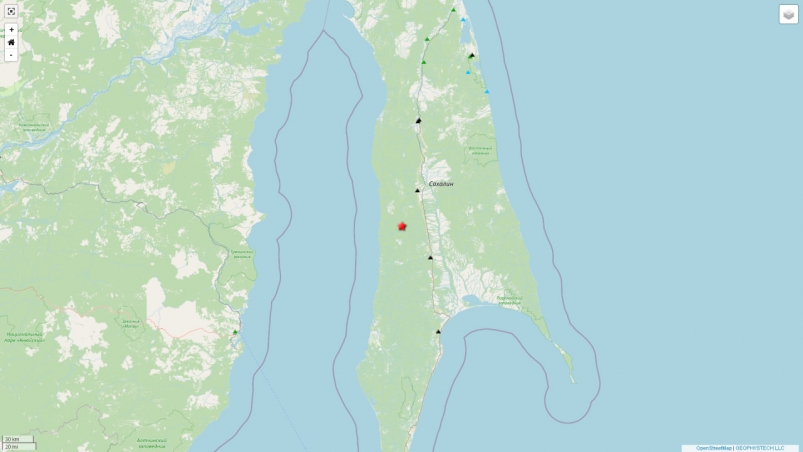 Землетрясение было зафиксировано в Смирныховском районе в 05.25 31 января Место землетрясения в Смирныховском районе.
