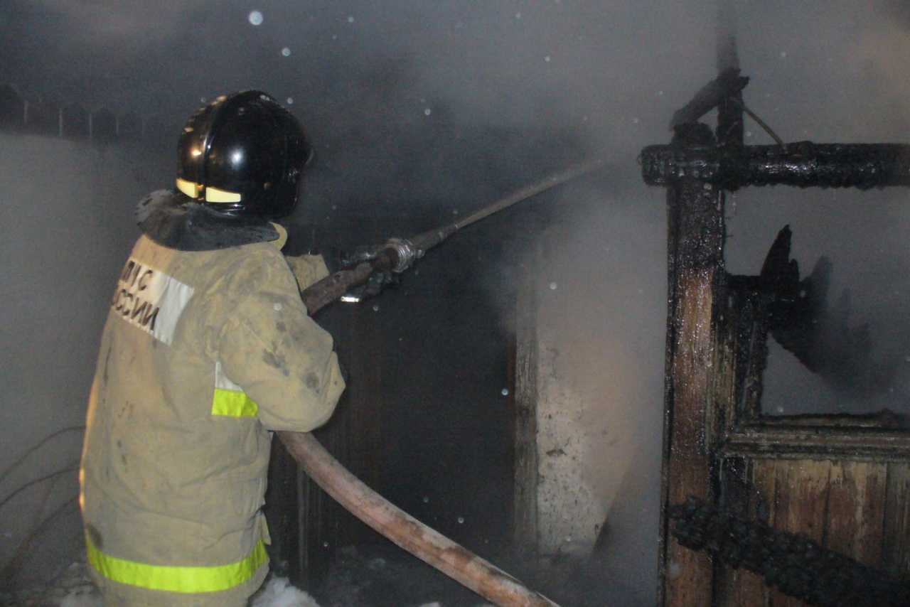Ночью в Охе пожарные тушили баню
