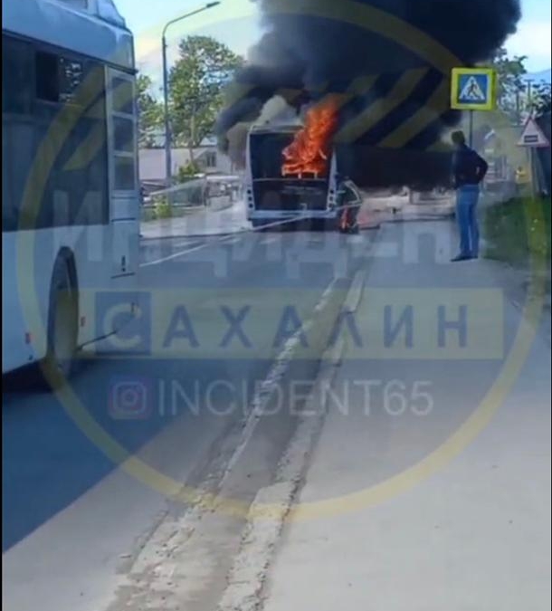 Пассажирский автобус загорелся в Южно-Сахалинске
