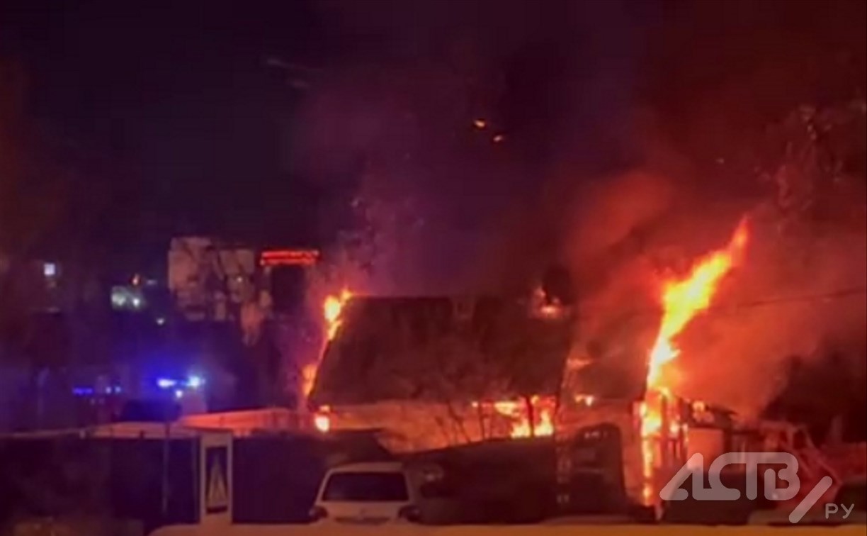 Под утро в центре Южно-Сахалинска вспыхнул дом