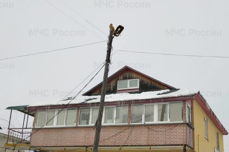 Сахалинец помог спасти забравшегося на столб кота. Фото: пресс-служба ГУ МЧС России по Сахалинской области