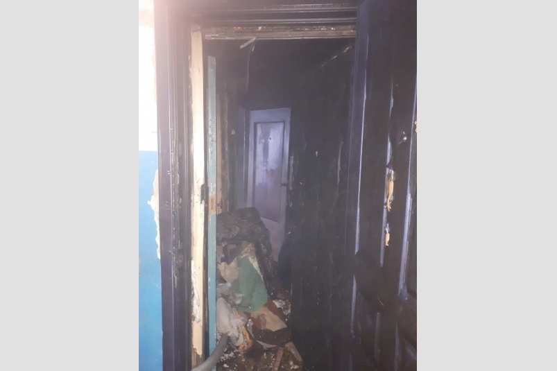 Сильный пожар в сахалинском Шахтерске унес жизнь человекаЧтобы попасть в квартиру, спасателям пришлось ломать закрытую изнутри дверь