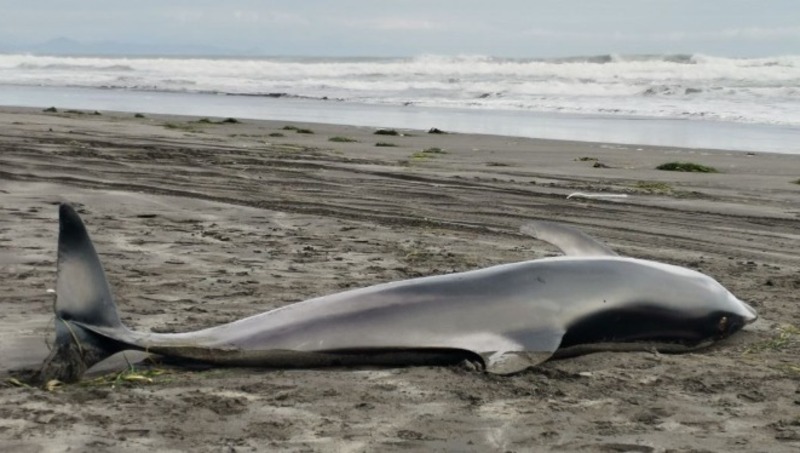 Шторм, обрушившийся на остров Кунашир, оставил печальный след в виде выброшенного на берег трупа дельфина в бухте Головнина.