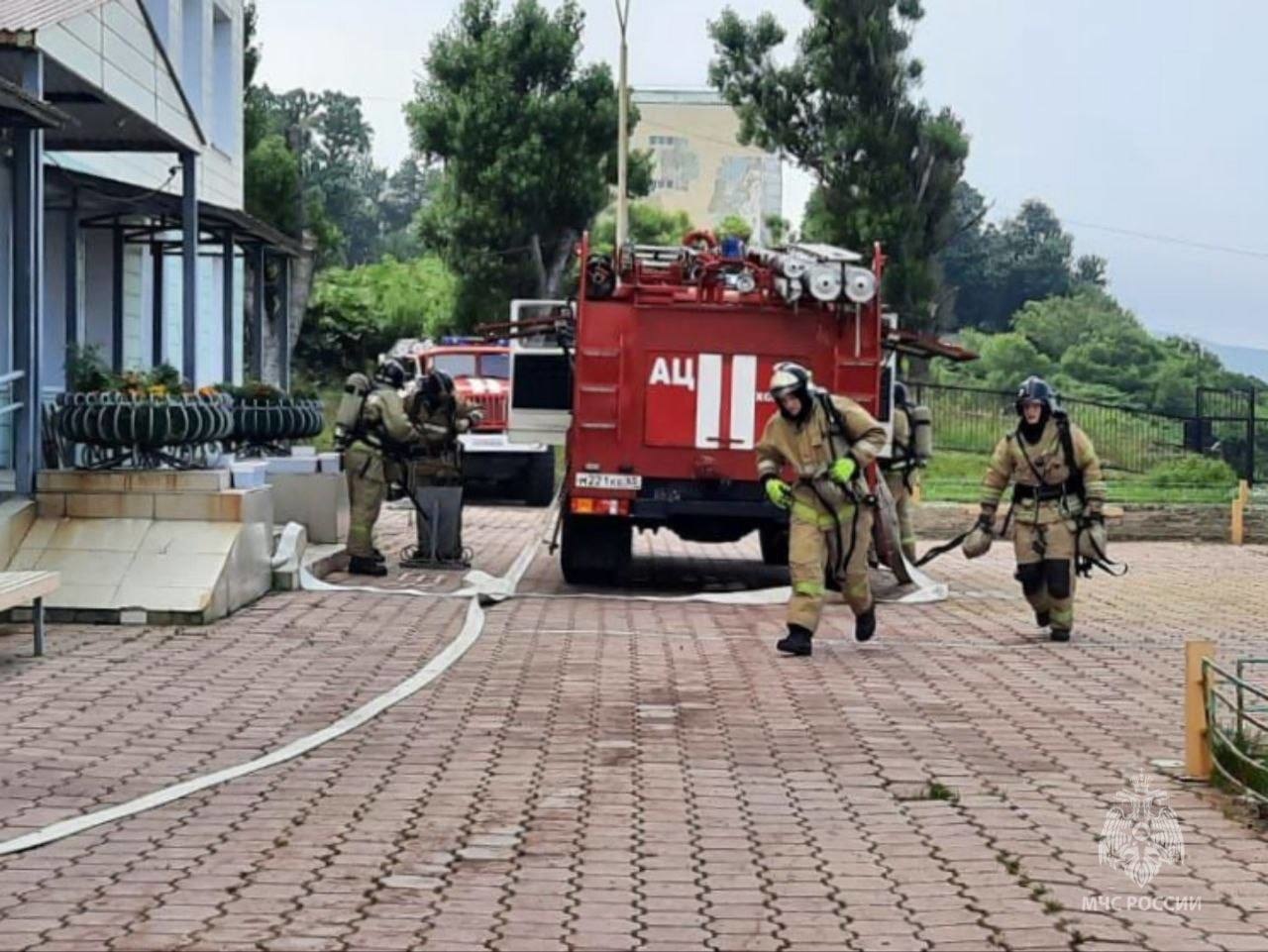 В Холмске пожарные потушили условный пожар