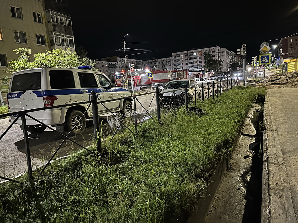 Предварительно, иномарка на большой скорости снесла бетонное ограждение, установленное для проведения строительно-монтажных работ по ремонту теплотрассы.