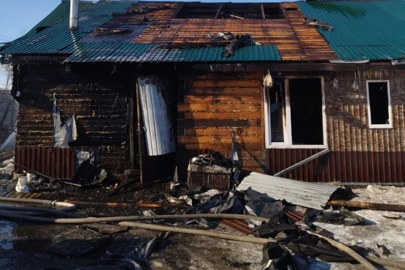 В Поронайске сгорел частный дом. Фото: пресс-служба агентства по делам ГО, ЧС и ПБ Сахалинской области