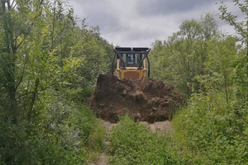 За несколько лет минполосы заросли травой, кое-где — кустарником. В противопожарном обустройстве бульдозеристу помогали госинспекторы Поронайского лесничества. Перед прохождением бульдозера на обеих сторонах минполосы срезали ветки деревьев, поскольку кроны не должны соприкасаться, иначе огонь при пожаре может по ним перекинуться в лесной массив.