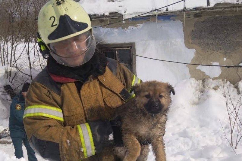 Южно-сахалинские пожарные спасли из горящего дома трех щенков