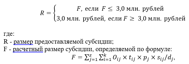 Размер предоставляемой субсидии рассчитывается по следующей формуле:
