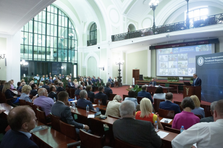 Президент ТПП РФ Сергей Катырин 21 июня провел в Конгресс-центре заседание Совета руководителей торгово-промышленных палат.
