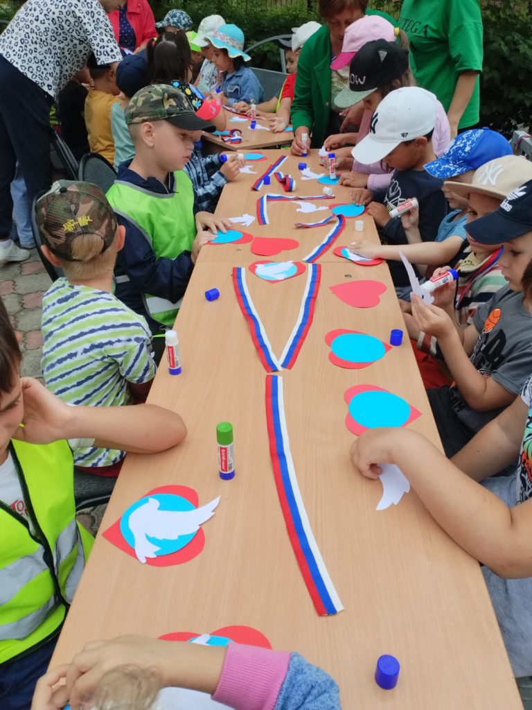 В конце праздника для детей и подростков прошёл мастер-класс «Великий Российский прославленный флаг» и флеш-моб «Российский триколор».