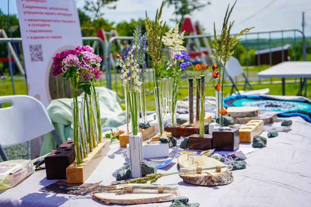 Пространство поделили на несколько тематических зон, где каждый нашел для себя что-то интересное. Посетителям предлагали товары ручной работы – игрушки, украшения, дизайнерские вазы для цветов, а также натуральные свечи из воска и сборы сахалинских трав.