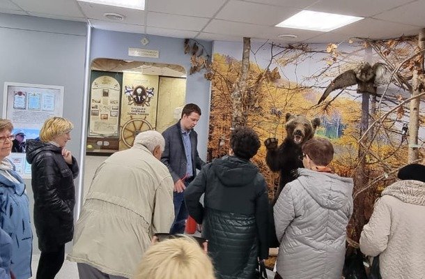 Для них была организована обзорная экскурсия по экспозициям и временным выставкам музея, в ходе которой присутствующие познакомились с музейной коллекцией и узнали много интересных фактов об истории развития нашего района и Сахалинской области. Посетители внимательно слушали рассказ экскурсовода, с любопытством рассматривали музейные экспонаты, задавали вопросы, и сами делились воспоминаниями.