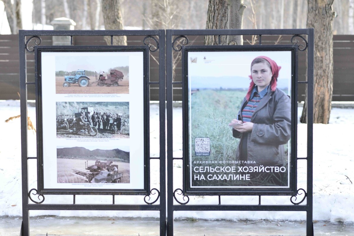 Сотрудники государственного исторического архива региона и парка культуры и отдыха имени Ю. Гагарина у южного входа в парк разместили новую экспозицию – «Сельское хозяйство на Сахалине».