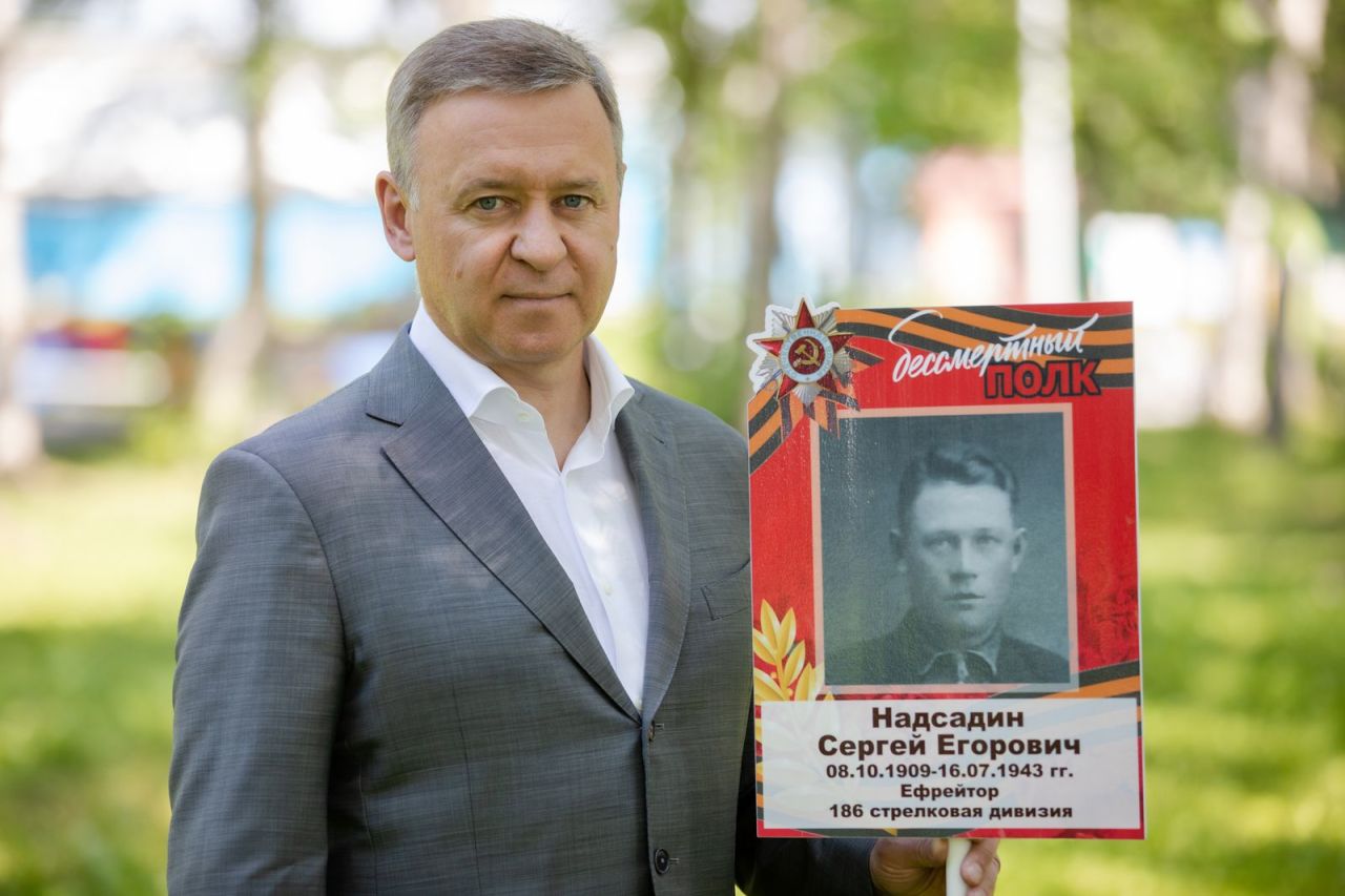«Мою семью тоже затронула Великая Отечественная война, на которой погиб мой дед по линии отца — Сергей Егорович Надсадин. Я никогда не видел деда, но бережно храню о нем память. Сергей Егорович родился в 1909 году. Работал шахтером в городе Анжеро-Судженске Кемеровской области. На фронт он ушел в 1942 году и служил сапером. Спустя год после призыва погиб при бомбежке в селе Бортное Орловской области. Светлая память всем, кто подарил жизнь многим поколениям россиян. Помним и гордимся!»,— поделился в своих социальных сетях мэр Южно-Сахалинска Сергей Надсадин.