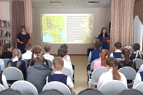 Накануне этой знаменательной даты в детской библиотеке прошёл патриотический час «Непокорённый Сталинград». Библиотекари рассказали пятиклассникам о ключевых моментах Сталинградской битвы и подвигах наших солдат. Дети читали и обсуждали рассказы С. Алексеева «Руки кверху, фельдмаршал Паулюс», «Дом Павлова», «Титаев», «Данко», «Ранен в бою солдат». В заключение была показана документальная хроника битвы за Сталинград.