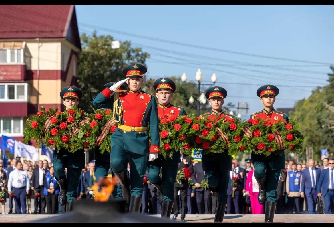 Сахалинское отделение «Молодой Гвардии» провело праздничное шествие в честь Дня Победы над милитаристской Японией и окончания Второй мировой войны