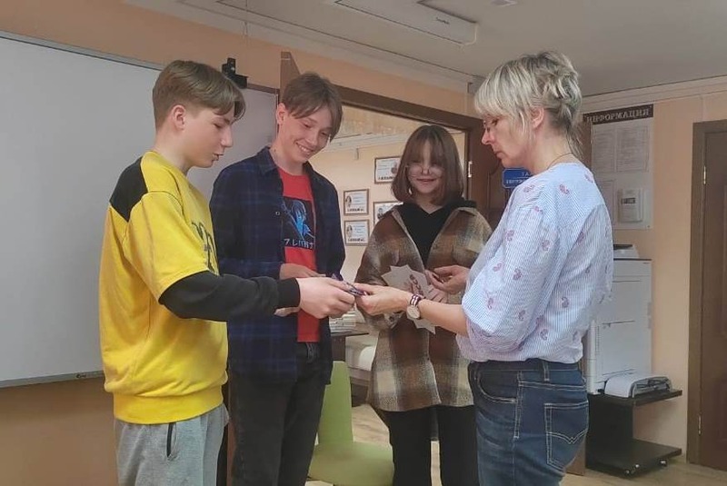 Елена Усачева рассказала о книгах, которые она написала про знаки зодиака. Оказывается, она верит, что люди, рождённые под тем или иным знаком, все-таки имеют характерные черты. Дети охотно обсудили с писателем и эту тему. Потом она предложила ребятам поиграть в писателей и придумать свою историю или рассказ. Все желающие получили от нее картинки с главными и второстепенными героями и стали активно сочинять, а позже презентовали свои истории.