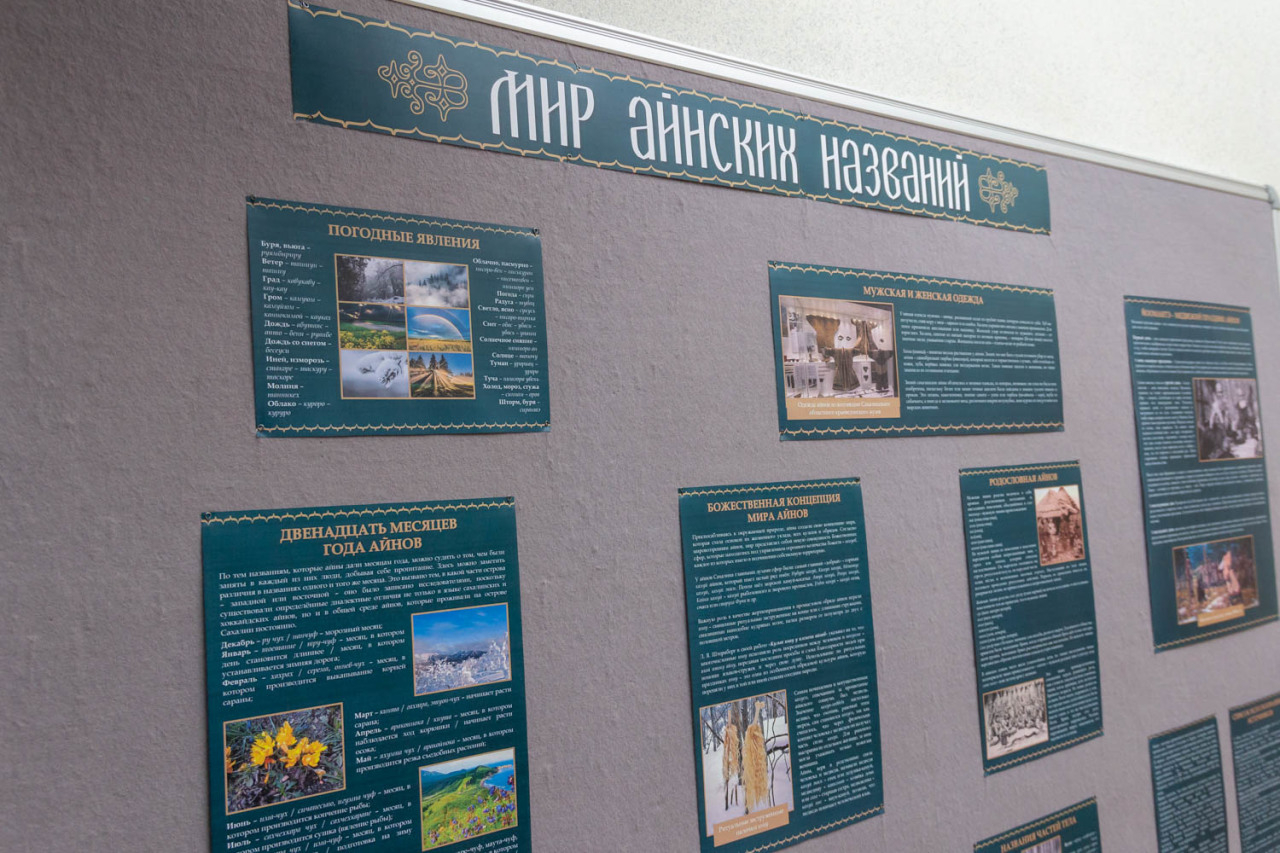 Экспозиция знакомит читателей с многообразием айнских названий через понимание особенностей культуры, быта и религиозного мировоззрения одного из самых загадочных народов мира.