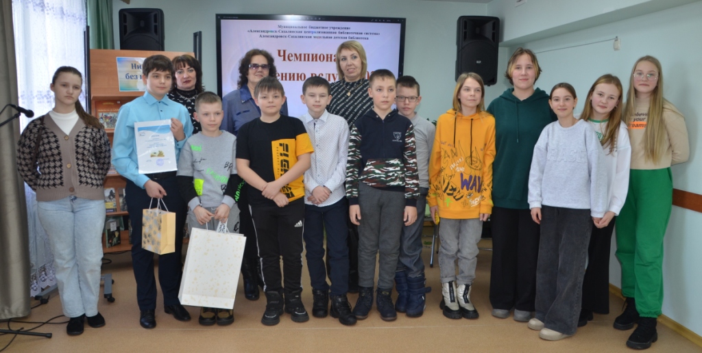 3 марта в Александровск-Сахалинской модельной детской библиотеке прошел третий «Чемпионат по чтению вслух» для детей среднего школьного возраста. Чемпионат был организован в рамках Десятилетия детства (2018-2027гг), Программы поддержки детского и юношеского чтения «Вектор внимания: ребёнок и книга». Мастерство чтения патриотических произведений продемонстрировали 20 школьников. По положению Чемпионата ребята без предварительной подготовки читали произведения советских авторов. Прозвучали отрывки из рассказов С. Алексеева, А. Митяева, А. Гайдара, А. Толстова, Л. Кассиля, К. Симонова и другие. Жюри оценивали правильность произношения, четкость и выразительность чтения.