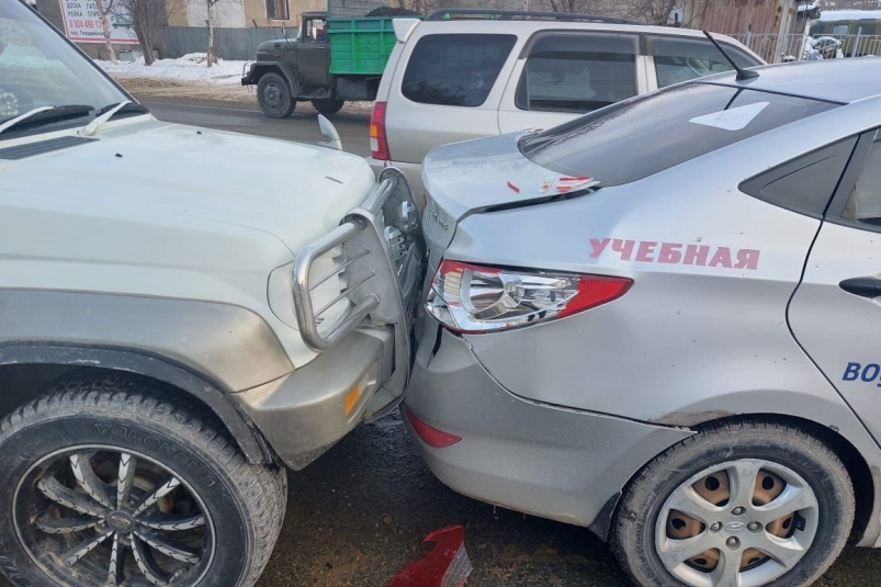 Джип влетел в учебную машину в Корсакове. Фото: УГИБДД УМВД России по Сахалинской области