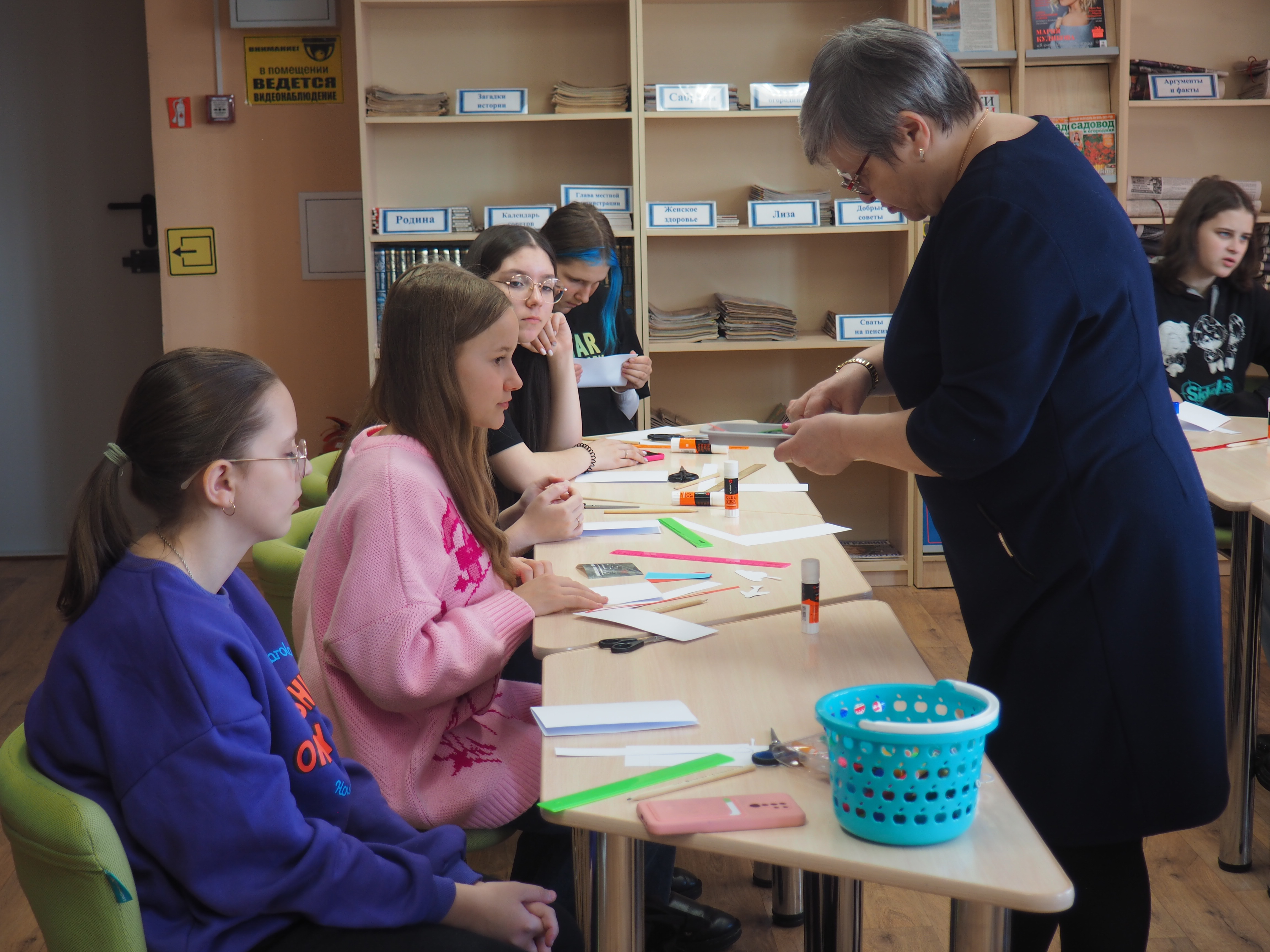 Работники модельной центральной городской библиотеки провели мастер-класс «Фронтовая открытка», приуроченный к празднованию Дня защитника Отечества, с учениками 7 класса МАОУ «СОШ №3 им. А.А. Булгакова».