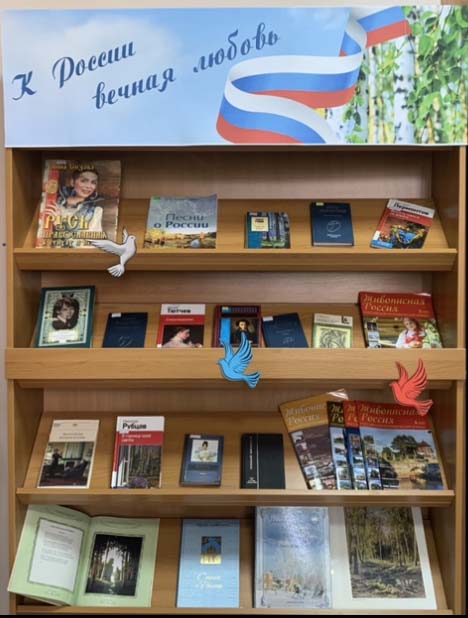 В центральной библиотеке в зале художественной литературы оформлена книжная выставка, посвящённая Дню России.