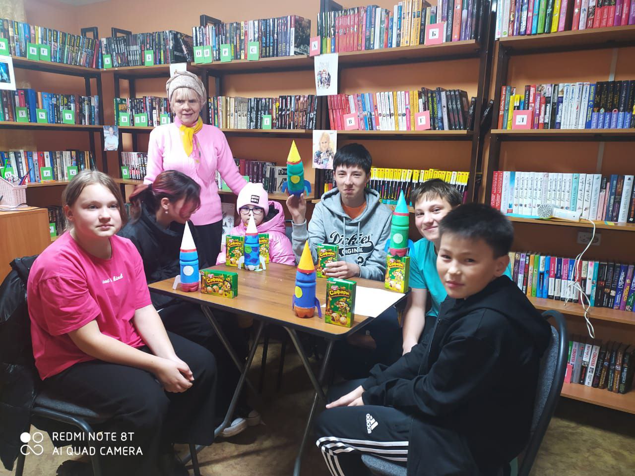 Дети разных возрастов с удовольствием мастерили летательный аппарат из пластиковой бутылки и бумаги. В ходе мероприятия библиотекарь рассказывала участникам, кто такие космонавты, кто первым полетел в космос и кем мы можем гордиться на сегодняшний день.