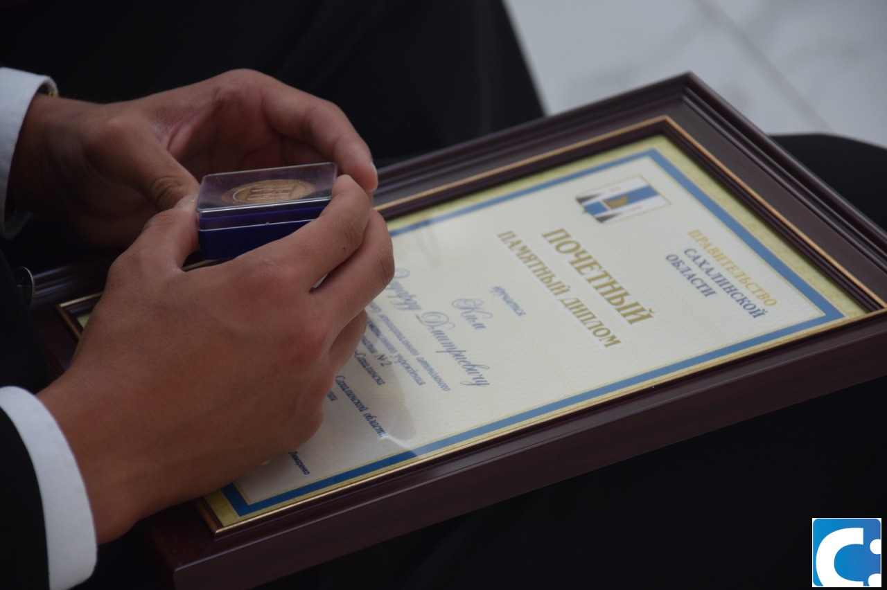 Знак отличия «За особые успехи в учении» и почётные памятные дипломы будущим студентам вручала министр образования Сахалинской области Анастасия Киктева. Она отметила, что в этом году количество выпускников-отличников увеличилось, и это большая гордость для региона.