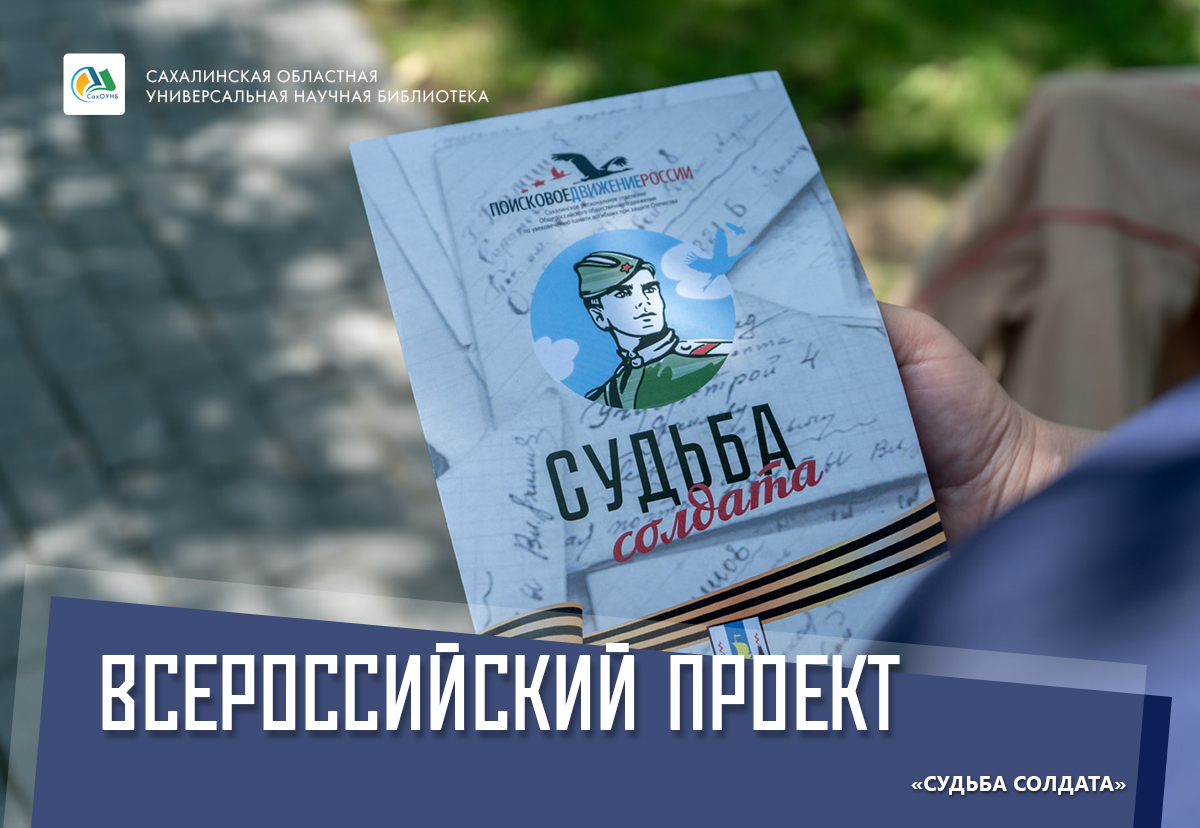 Всероссийский проект «Судьба солдата» реализуется в Сахалинской области региональным отделением «Поискового движения России». Площадка общественной приемной будет работать в сквере библиотеки.