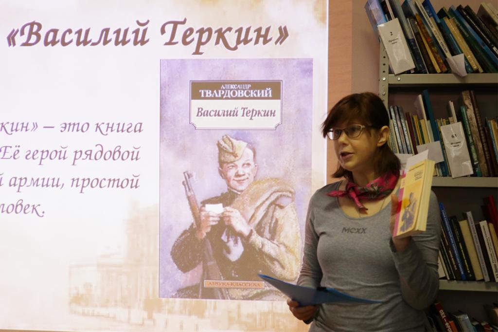 В городской библиотеке №13 прошла познавательная беседа «Василий Теркин – кто же он такой?», приуроченная к празднованию Дня Победы. В ходе беседы библиотекарь познакомила школьников с поэмой А.Т. Твардовского «Василий Теркин».