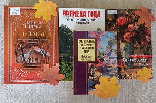 Также вниманию читателей представлены произведения художественной литературы, заглавия которых напоминают об осени: А. Моруа «Сентябрьские розы», Р. Брэдбери «Лето, прощай», Дж. Мойес «Счастливые шаги под дождём» и другие.