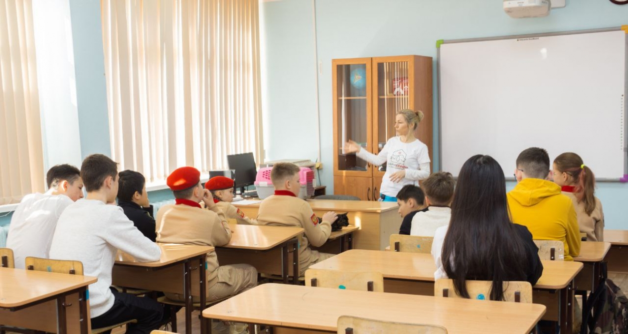 Кошка Варежка побывала в гостях у юнармейцев отряда "Алые береты" в МАОУ СОШ №3 имени Героя России Сергея Ромашина в Южно-Сахалинске. Волонтеры провели "Урок добра" (0+) и рассказали печальную историю животного, оставшегося без задней лапки, сообщает ИА SakhalinMedia со ссылкой на пресс-службу сахалинского центра помощи животным "Доброе сердце".