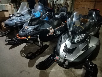 В ходе проведения обысков у жителей Углегорска и Охи обнаружены и изъяты более 10 снегоходов, предназначенных для перевозки грузов и имеющих высокую проходимость, сани-волокуши, оружие и боеприпасы, предназначенные для охоты на дикого зверя, и другие предметы, имеющие значение для доказывания по уголовному делу. Также в ходе следственных действий в гаражных боксах, ангарах, контейнерах и других помещениях обнаружены тайники и холодильные установки, в которых находились мешки с тушами оленей и другими биоресурсами.