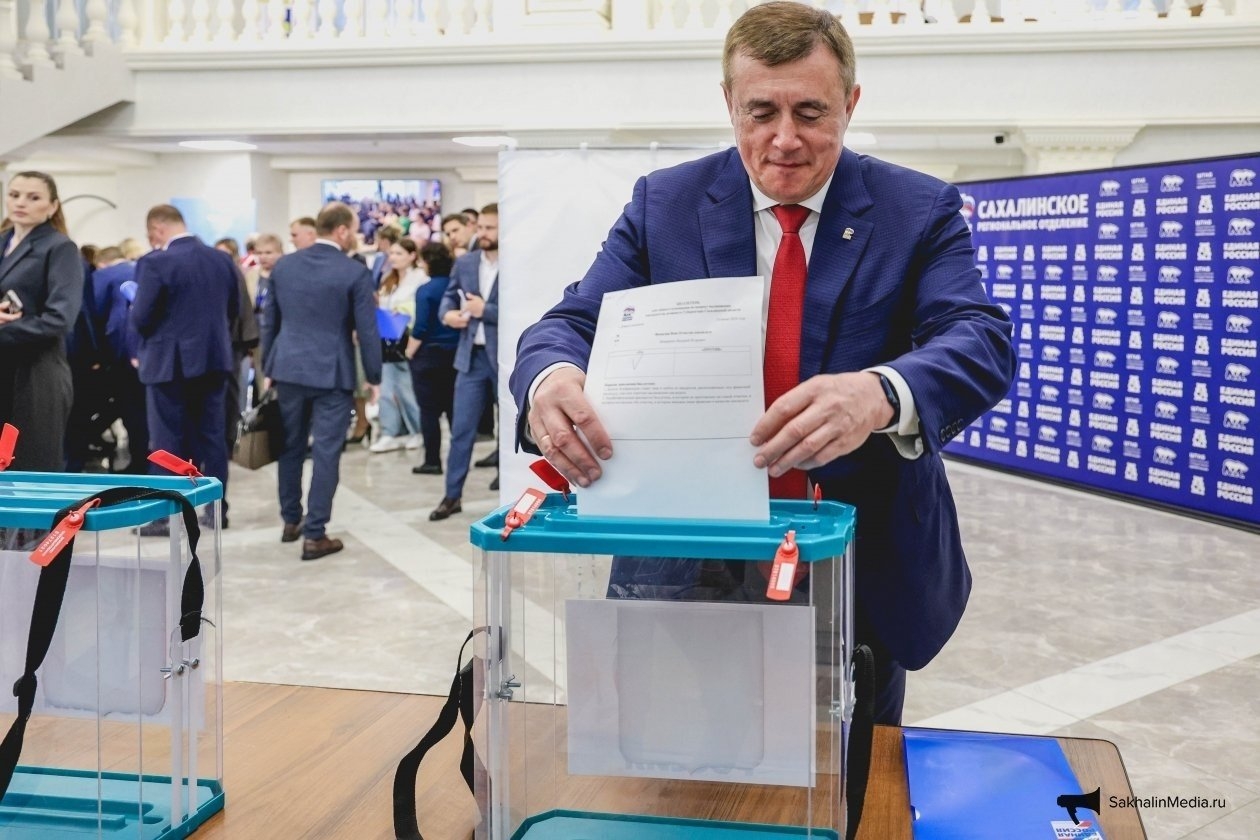 Валерий Лимаренко на конференции голосует за выдвижение. Фото: ИА SakhalinMedia