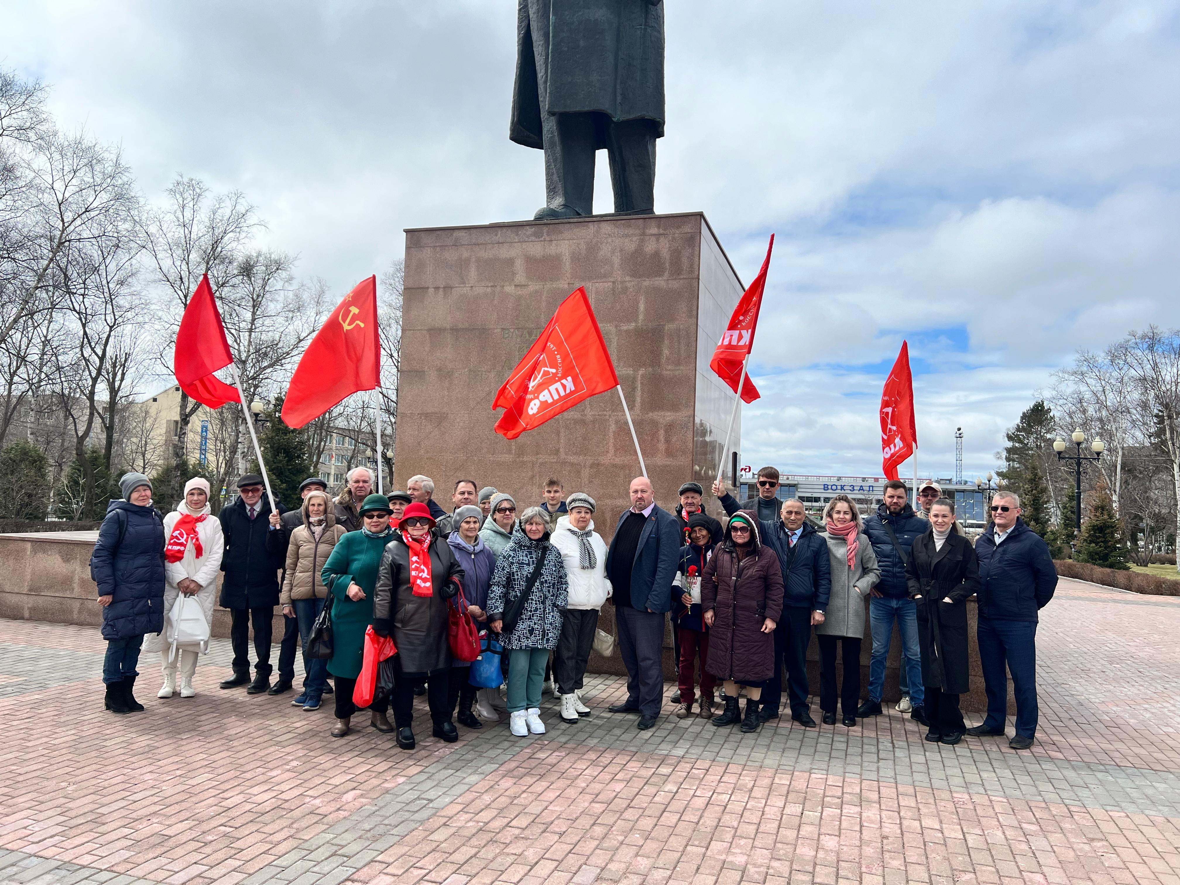 В Южно-Сахалинске члены КПРФ возложили цветы к памятнику Ленина, сказали несколько простых искренних слов от чистого сердца.