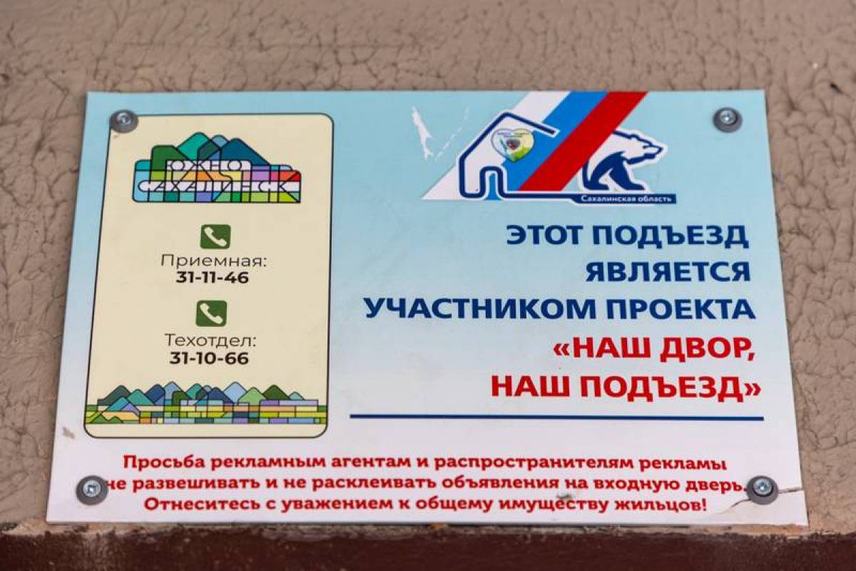Напомним, в прошлом году в Сахалинской области привели в порядок более тысячи подъездов и входных групп. Содействие реализации программы оказали волонтеры партии «Единая Россия». В этом году в каждом доме должны создать образцовый подъезд.