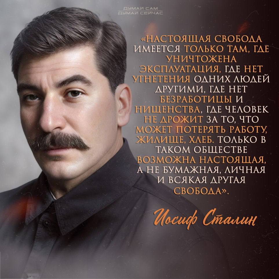 Свобода капиталистов эксплуатировать и грабить трудящихся, свобода паразитов жить чужим трудом действительно очень сильно пострадала во всём мире из-за товарища Сталина.