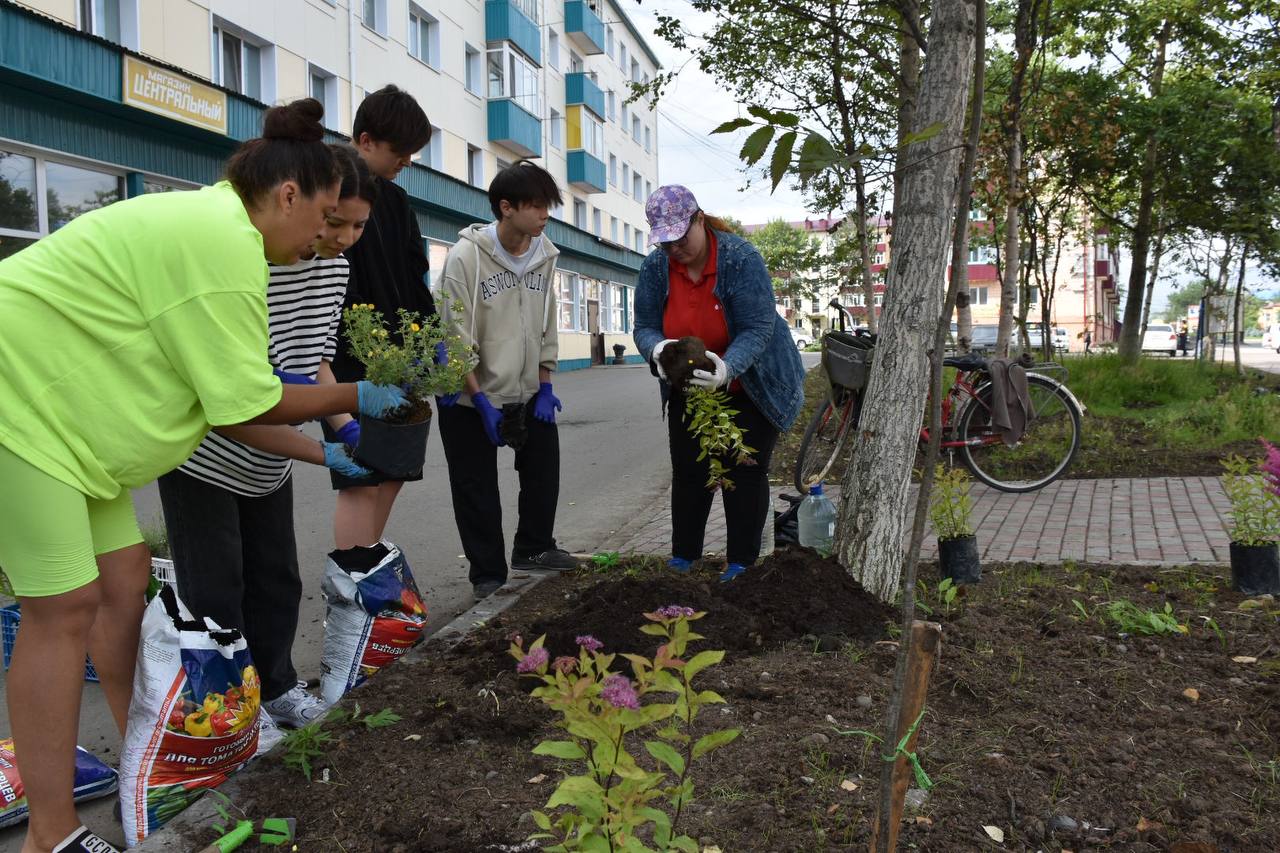 Свыше сорока кустов многолетних цветов и растений украсили центр Поронайска. Эта яркая акция была задумана как поздравление с наступающим Днем города, который наступит 21 августа.