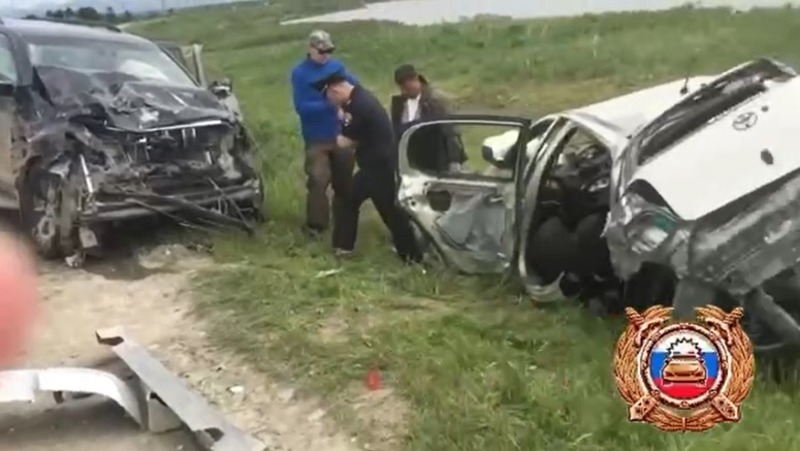 По данным ведомства 27-летний водитель Toyota Vitz, двигаясь в северном направлении, зацепил правую бровку на затяжном повороте и вылетел на встречную полосу, где лоб в лоб столкнулся с Toyota Land Cruiser Prado.