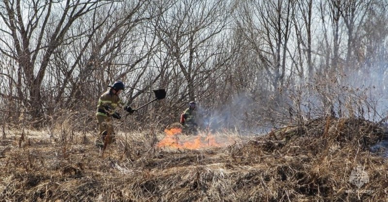 Пожарные ликвидировали возгорание сухостоя в Углегорске