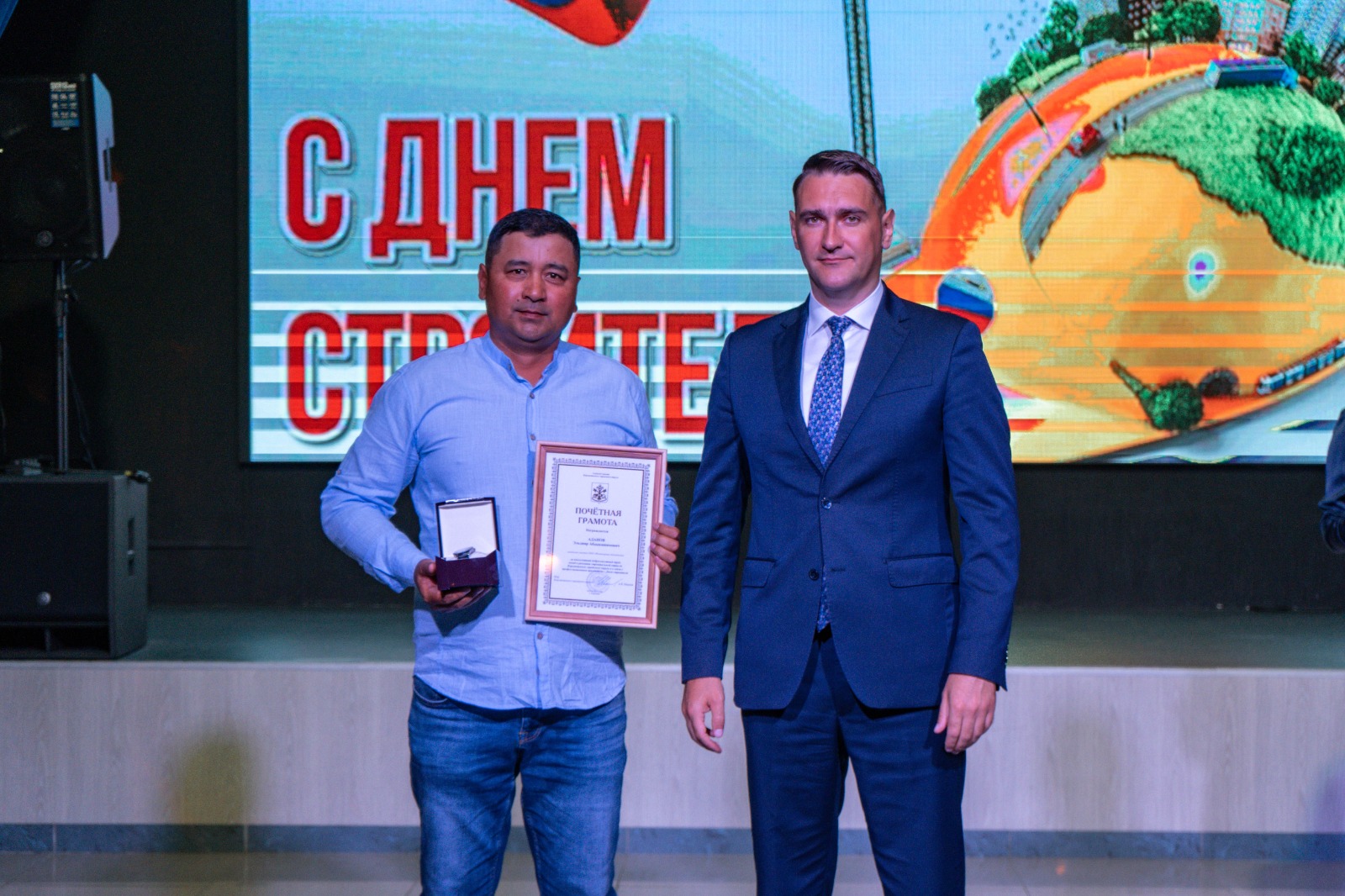За многолетний добросовестный труд, вклад в развитие строительной отрасли Корсаковского городского округа и в связи с профессиональным праздником почётной грамотой администрации Корсаковского городского округа награждены: начальник участка ООО «Инженерные технологии» Эльдияр Аданов, электрогазосварщик 4 разряда ООО «Строймаркет» Сергей Заморук, бухгалтер ООО «Строймаркет» Екатерина Табурина.