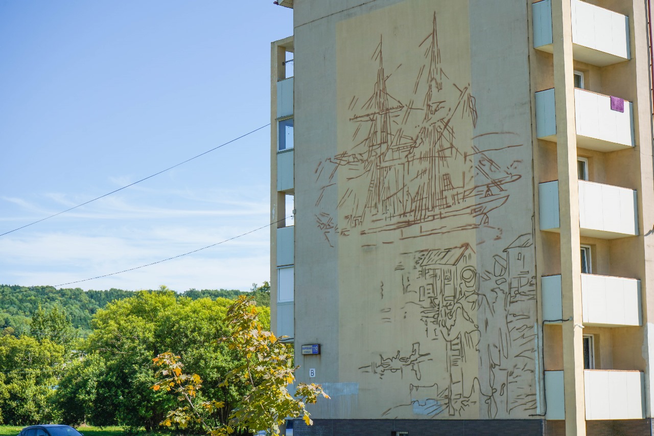 Изображения на фасадах - часть общей композиции, которая вскоре продолжится вдоль новой набережной реки Корсаковки…
