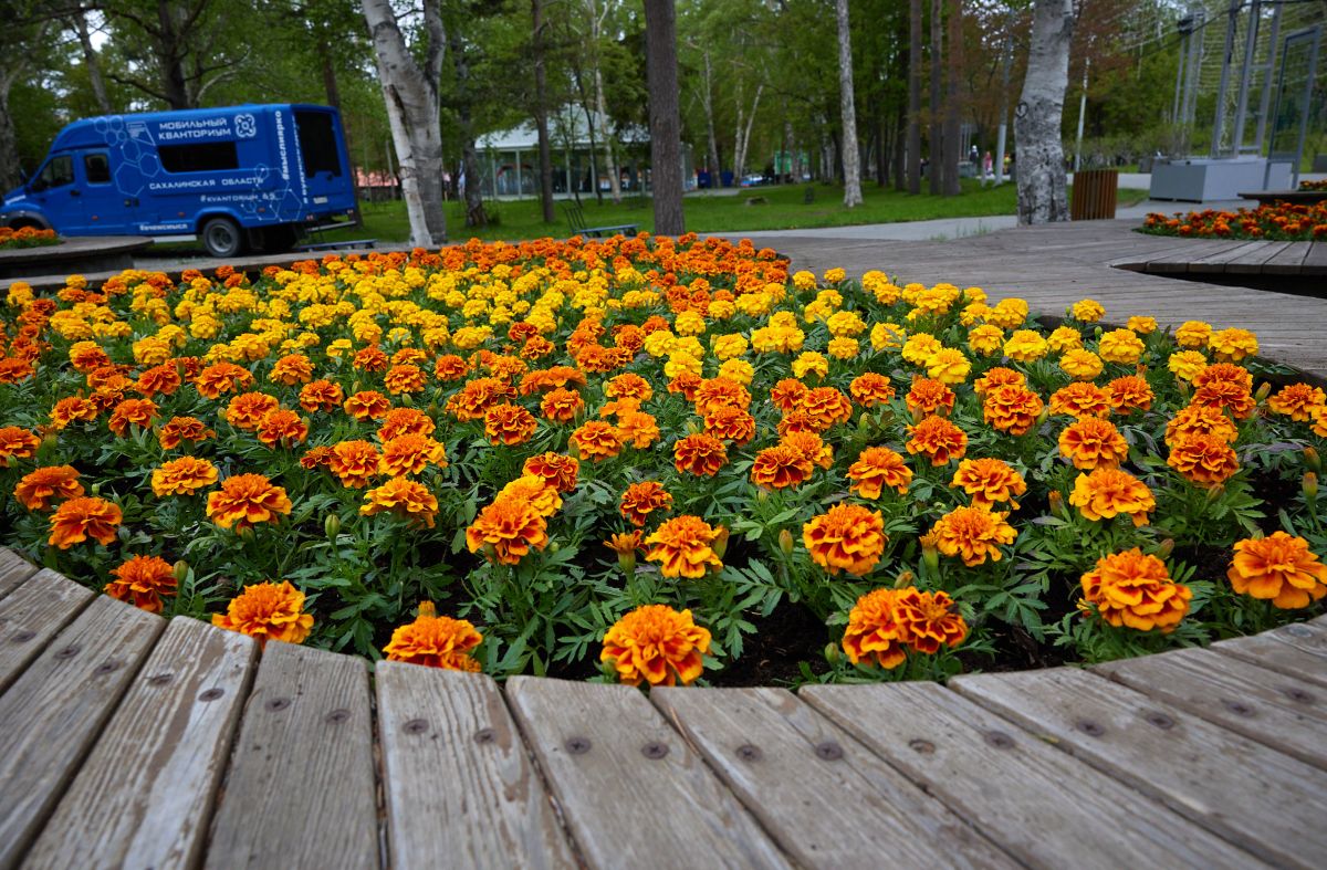 На клумбах городского парка в Южно-Сахалинске высадят 28 тысяч цветов