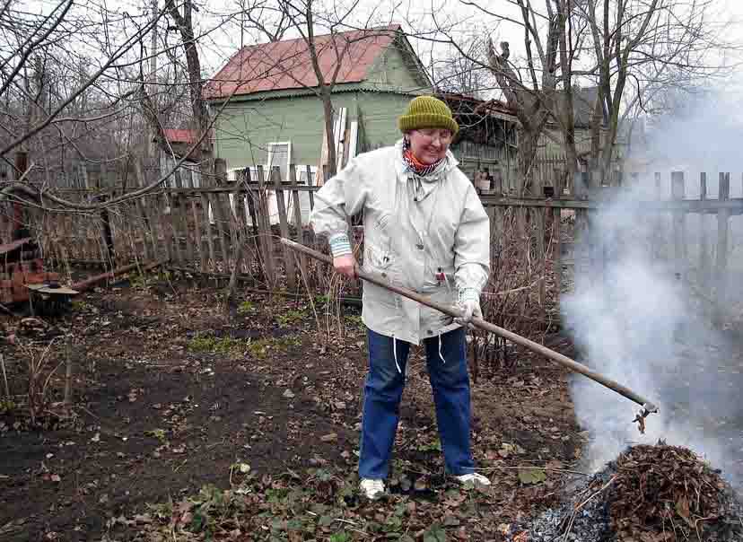 Беремся за грабли, на них не наступаяПо клумбам и грядкам пройдитесь граблями, уберите сор, прошлогоднюю листву, ботву, ветки. Их можно сжечь в металлических бочках. Сейчас пожарные разрешили это делать в 20 метрах от строений. Подсохшие плантации земляники можно прокопать и внести удобрения.
