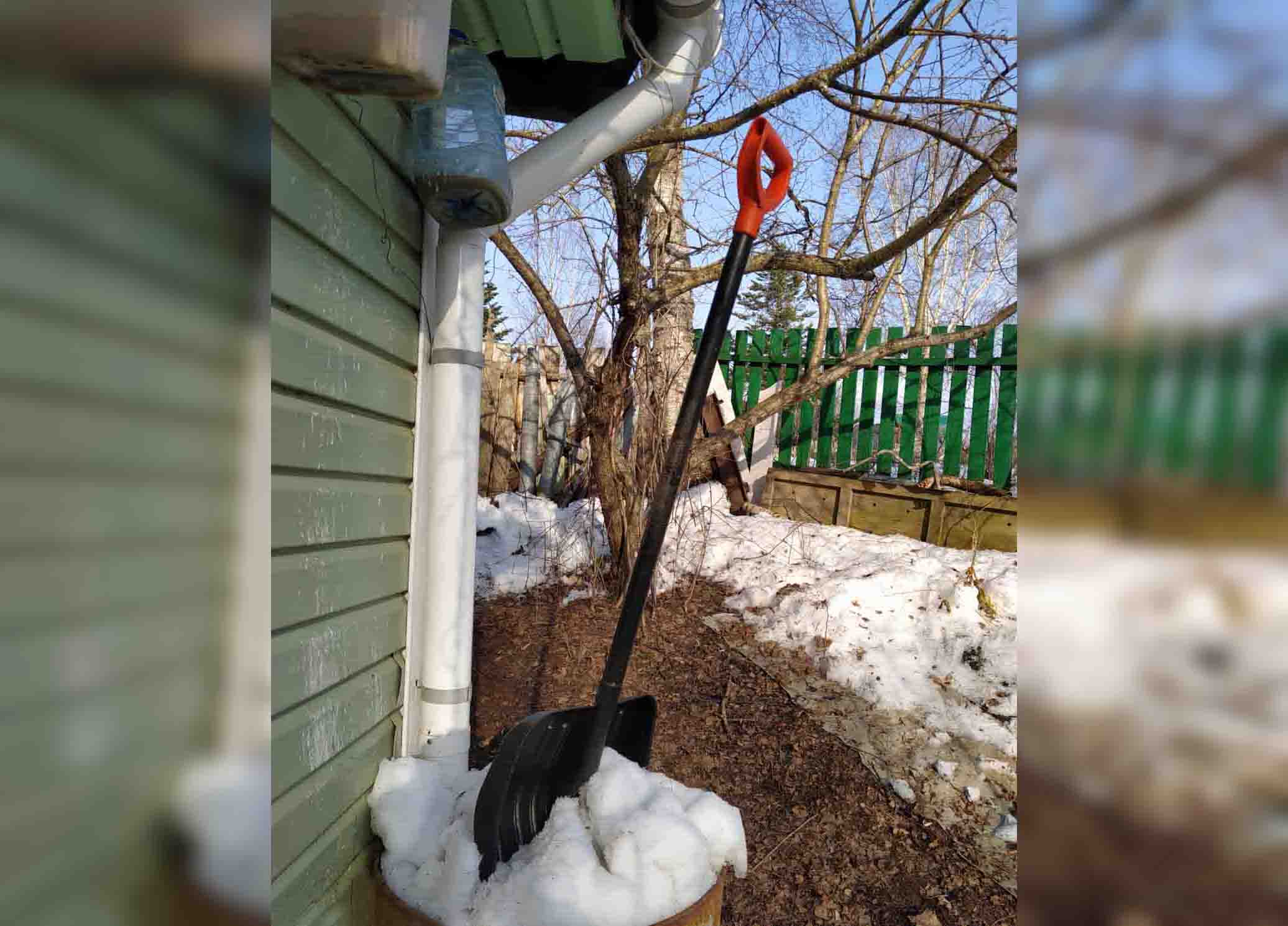 Снег в бочках – это живительная влага для растений, когда подсохнет земля.