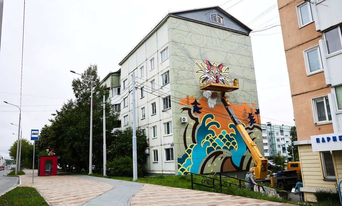 Пластилиновый реализм и «Дракошка»: первые в этом году муралы появляются на улицах Южно-Сахалинска