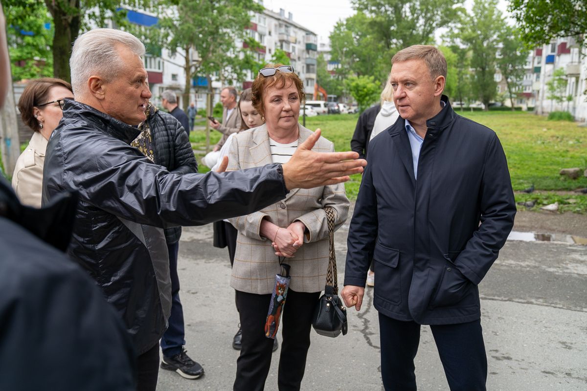 В ходе традиционного субботнего объезда мэр Южно-Сахалинска Сергей Надсадин и губернатор Валерий Лимаренко посетили прилегающую территорию к детскому саду № 10 «Росинка».